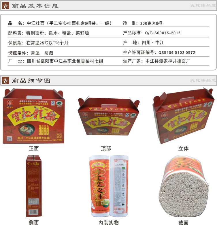 中江手工空心挂面 传统技艺传承手工精制 300g*6礼盒