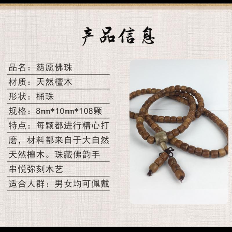 慈愿佛珠宗教工艺品佛珠桶珠108颗手串项链念珠天然檀木佛珠